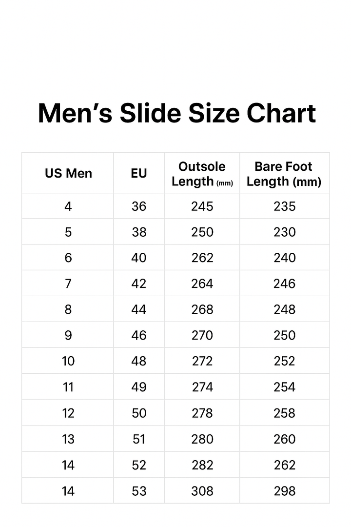 Slides are true to size fitting.